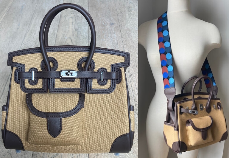 オリジナル(”バーキン・カーゴ”)は、バーキンの中でもキャンバス素材を用いた軽量さが人気で、複数のユーティリティ・ポケットがついたレア物。