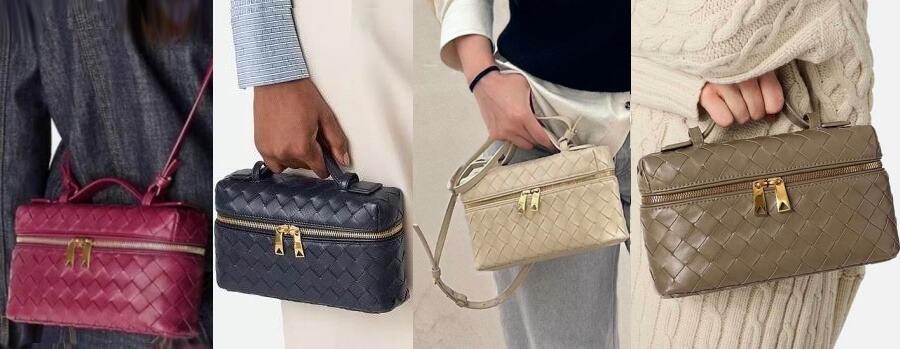 BV ウィーブ・ハンドル・レザーストラップ・バッグは、ヴァニティ・ケースのスタイルで、上質で柔らかいレザー・テープのウィーブ素材の人気シリーズ。