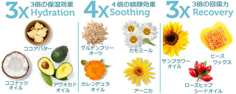そのことからも炎症を抑える治癒力、傷ついた肌をプロテクトするバリア効果があるのは容易に想像がつくところ。