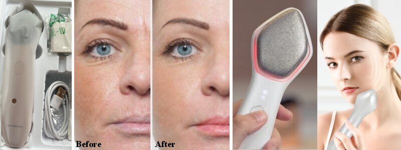 肌に当てるだけでダイヤモンド・ヘッドが微弱なバイブレーションで角質化された古い皮膚を除去し、コラーゲン、エラスティンの分泌や血行を改善しながら、