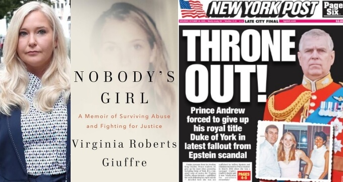 問題のアンドリュー王子とは 関係を3度強要されており、アンドリュー王子が彼女の腰に手を回し、そのすぐ横にギレーン・マックスウェルが立っている有名な写真は、初めて王子にロンドンで出会った際に、マックスウェル宅でインスタント・カメラで撮影されたとのこと。 「この娘は何歳に見える?」とマックスウェルに尋ねられた王子は「17歳」とヴァージニアの年齢を言い当て、「自分の娘達より少し年上に見えた」と説明。その後エプスティーン、マックスウェル、アンドリュー王子、ヴァージニアは、当時トランプ氏がロンドンで経営していたナイトクラブに出掛け、そこで王子が大量の酸っぱい匂いの汗をかいて、リズム感の無い踊りをしていた様子は、生前ヴァージニアがインタビューで語っていた通り。 マックスウェルはヴァージニアに「家に戻ったら、日頃ジェフリー(エプスティーン)にしているのと同じことを王子にするように」と指示したという。