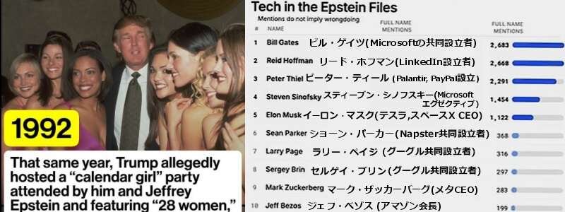 さらにエプスティーンが ITビリオネア達とも深い関りがあった様子にも注目が集まっており、前述のピーター・ティール、イーロン・マスク、マーク・ザッカーバーグをエプスティーンに紹介したリード・ホフマンは