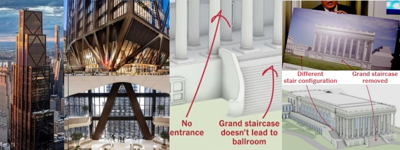 今週公開されたボールルーム・レンダリングは、AIで適当に作ったとしか思えないレべルで、問題だらけの造りをNYタイムズ紙が指摘してヴァイラルになり、