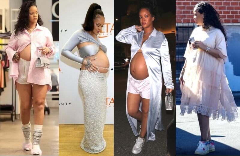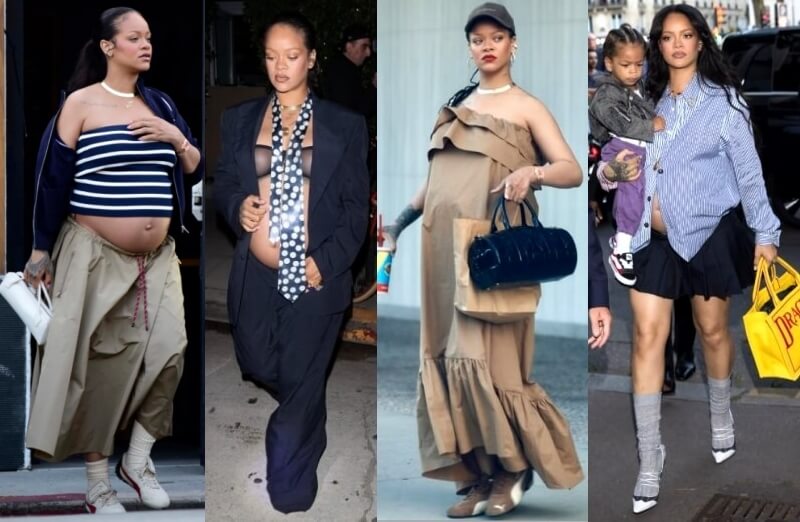 写真上左はその点ではリアーナらしからぬマタニティウェア。