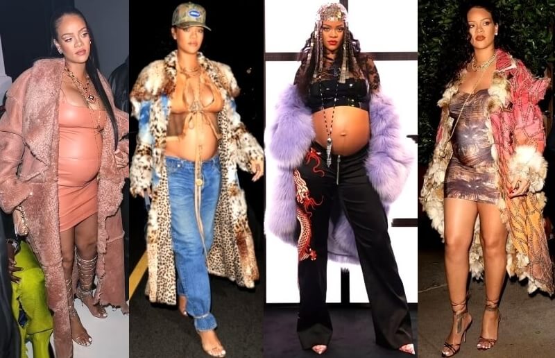 写真上はフェンティ・ビューティーのイベント等でスナップされたリアーナ。 当時は多くの人々がその奇抜さに驚いたリアーナのマタニティですが、