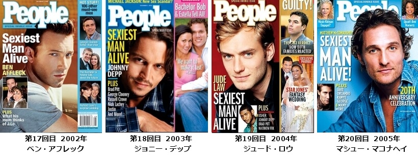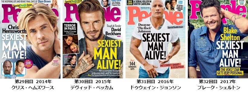 昨年、2年前に誰が選ばれたかなど知らないのは当たり前で、今も ”Sexiest Man Alive”に選ばれた顔ぶれで