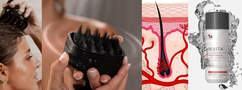 電動スカルプ(頭皮)マッサージャーを併用して洗髪すること。