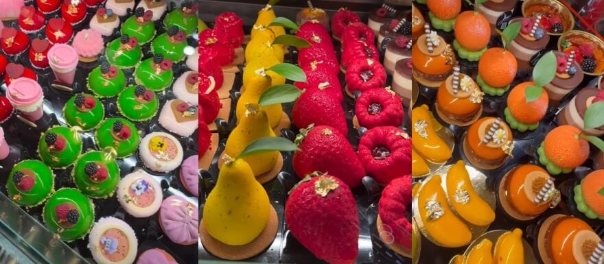 中でも人気なのがフルーツの色と形を美しく再現して、中にそのフルーツのピューレとムース、そしてトレス・レチェスという