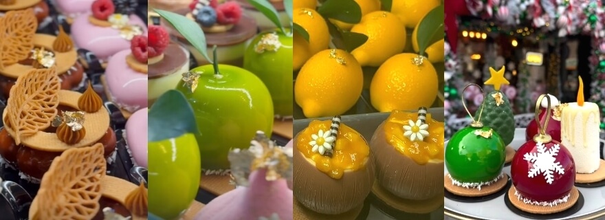 写真下右は、ホリデイ・シーズン限定のクリスマス・オーナメントやキャンドルを模ったケーキで、