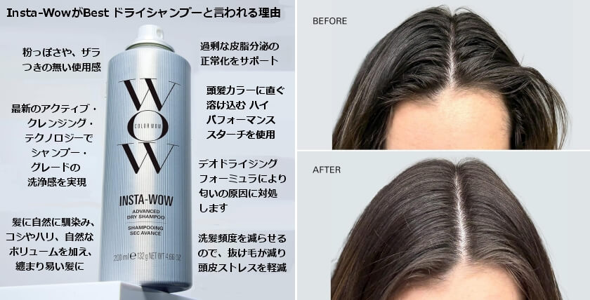 発売以来、美容関係者の間でベスト・ドライシャンプーの呼び声が高いのがインスタ・ワオ・ドライ・シャンプー。
