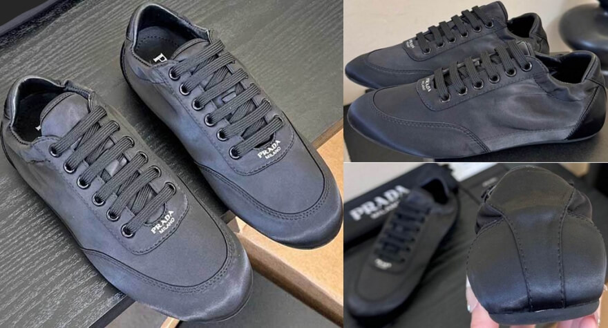 丈夫なサテン素材のスニーカーは、ソールが薄く、かかとが柔らかいソフト・ストラクチャー。