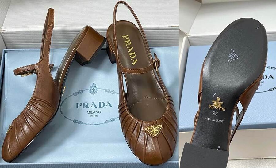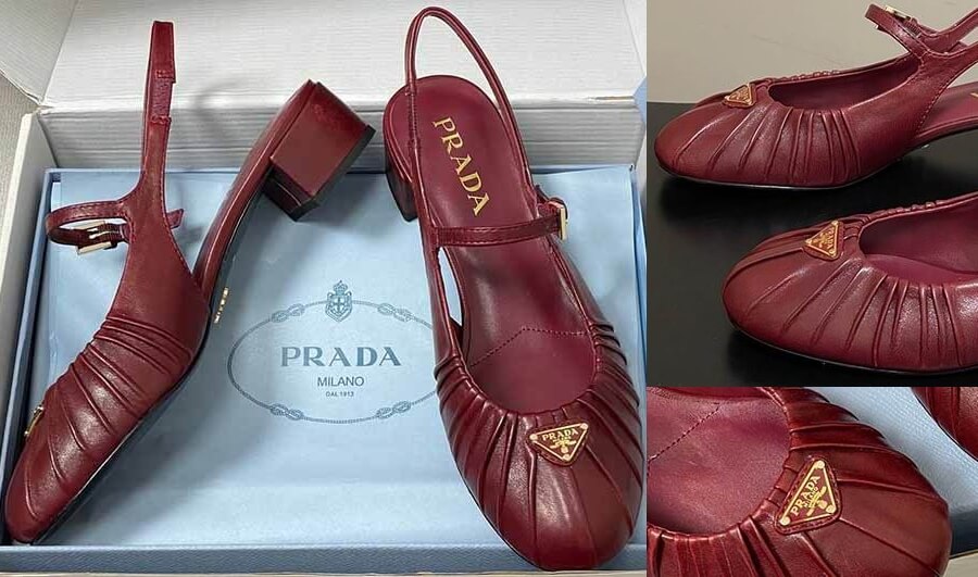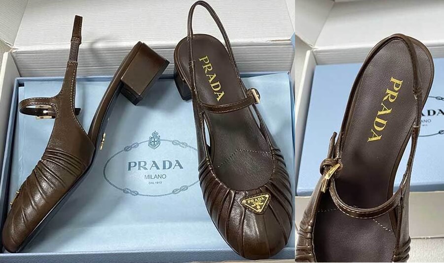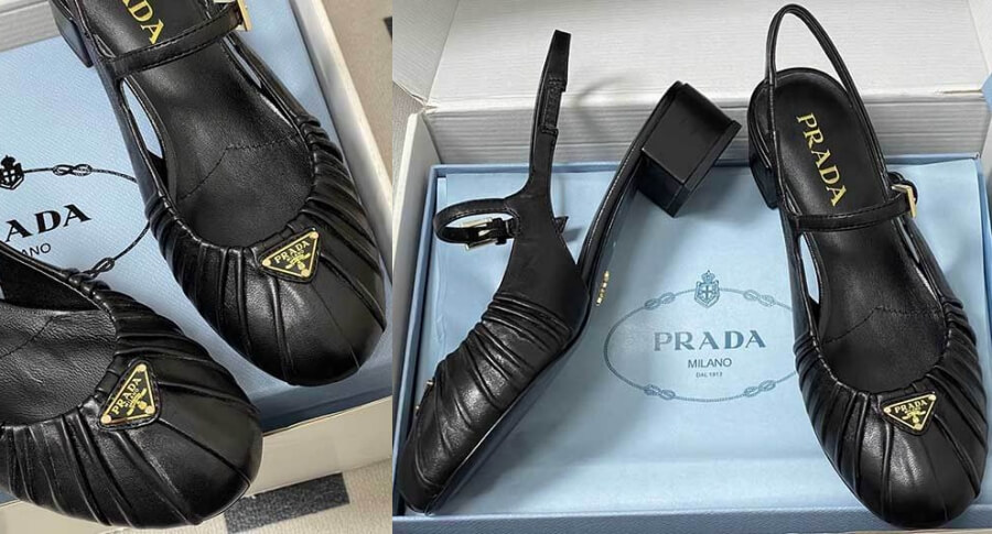 お馴染みのトライアングル・ロゴ・プレートをフロント・センターにあしらったPR メアリージェーン・スリングバックです。