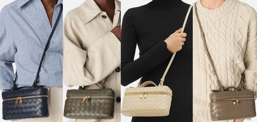 BV ウィーブ・ハンドル・レザーストラップ・バッグは、ヴァニティ・ケースのスタイルで、上質で柔らかいレザー・テープのウィーブ素材の人気シリーズ。