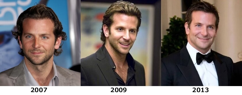 ブラッドリーの美容整形への引き金になったのは、頭髪の生え際が上がって来た対策の植毛と言われますが、