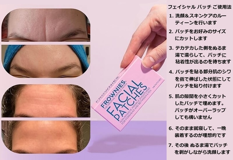 パッチをシワが気に成る部分に最低3時間、理想的には一晩貼り付け、それを3〜4週間続けることでシワが改善されることで、