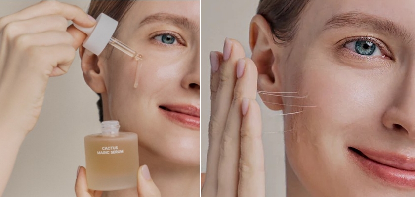 パワフルな保湿効果をもたらすサボテン粘液は、アプライした直後は糸を引く粘着質を見せますが、素早く肌に浸透。