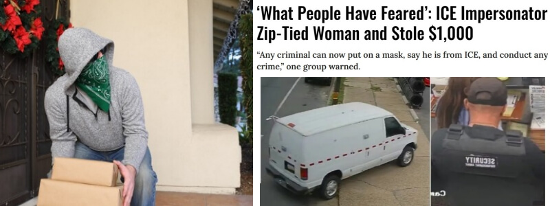 ICEの捜査官は覆面車両で現れ、顔をマスクで隠し、IDを提示することなく身柄拘束をすることから なりすましは簡単で、移民の店員に手錠を掛けて店内の金品を盗む、