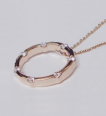 金属部分のピンク・ゴールドはこのセブン・ストーン・サークル・ペンダントのみのオファー。その他、ホワイト・ゴールド、イエロー・ゴールドの計3種類からお選びください。