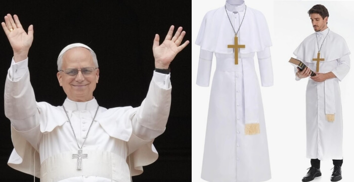 本来なら聖職者、それもローマ法王のコスチュームを着用しようという人は そういませんが、アメリカ人初のローマ法王レオ14世となると話は別。