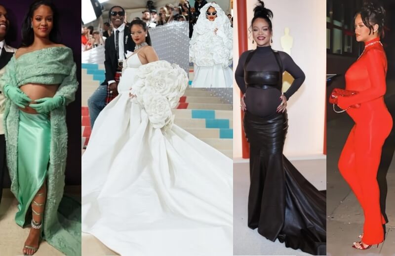 写真上はフェンティ・ビューティーのイベント等でスナップされたリアーナ。 当時は多くの人々がその奇抜さに驚いたリアーナのマタニティですが、