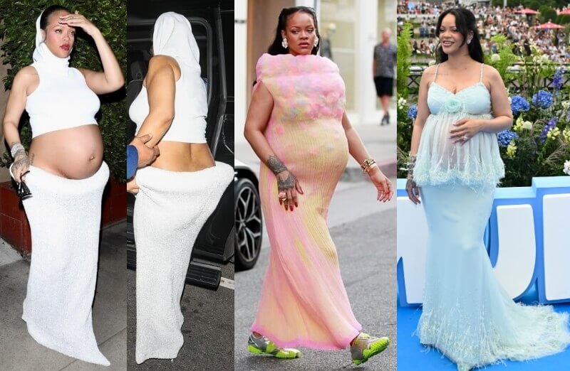 写真上左はその点ではリアーナらしからぬマタニティウェア。