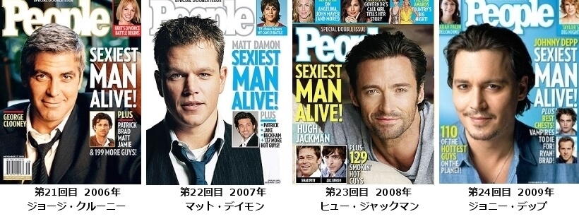 昨年、2年前に誰が選ばれたかなど知らないのは当たり前で、今も ”Sexiest Man Alive”に選ばれた顔ぶれで