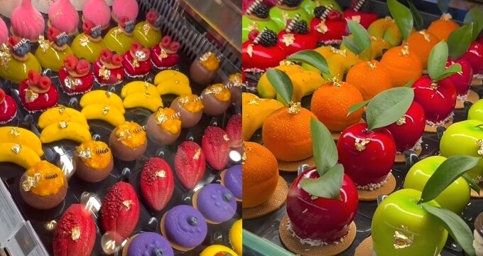 中でも人気なのがフルーツの色と形を美しく再現して、中にそのフルーツのピューレとムース、そしてトレス・レチェスという