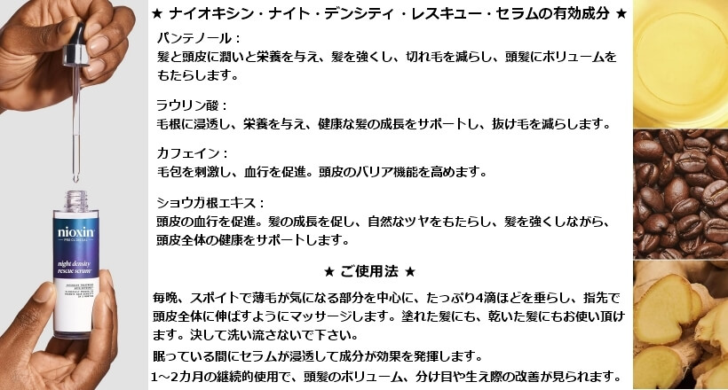 ナイト デンシティ レスキュー セラムは、抜け毛が増えた、髪の毛が細くなり、ボリュームが衰えた人、分け目が太くなり、