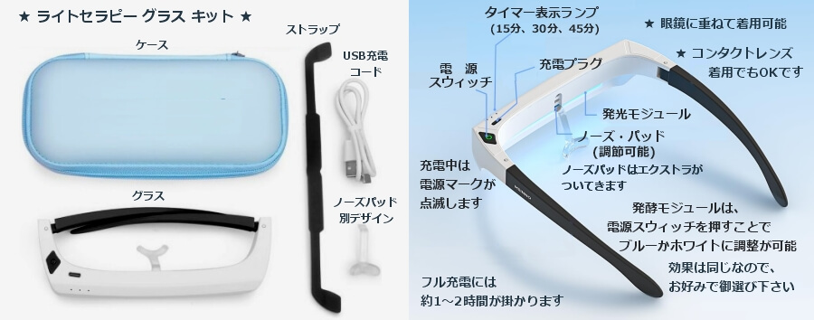 その効果を、30分高額マシンの前に座り続けることなく実現するのがライト・セラピー・グラスです。
