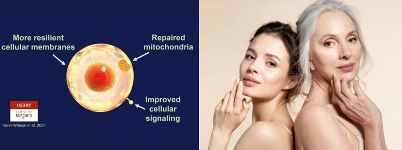 さらには長寿と若さの源はミトコンドリアであるミトコンドリアのダメージ修復とコンディション改善の機能をもたらす広範囲の効果が望めます。
