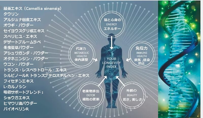見方を替えれば、その条件を満たす体調を維持することでロンジビティが達成するという見地に立って開発されたのが、このロンジビティ・アクティベーターです。