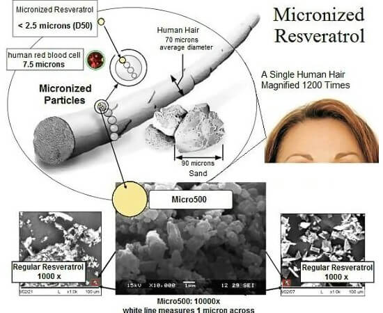なお、これまでレスヴェラトロールのマイクロ500を接取していたお客様については、同製品は純度は98%と極めてマイクロ500に近いものの、粒子の細かさによる浸透力は