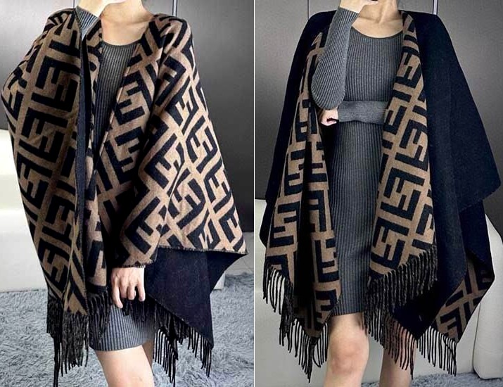 サイズは140cm × 145cmで、素材はカシミア49%、ウール51%の混紡。一流ブランドのオリジナルは、課税前で2350ドルの高額品。